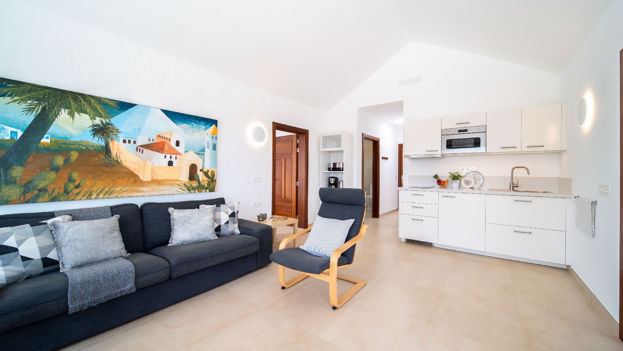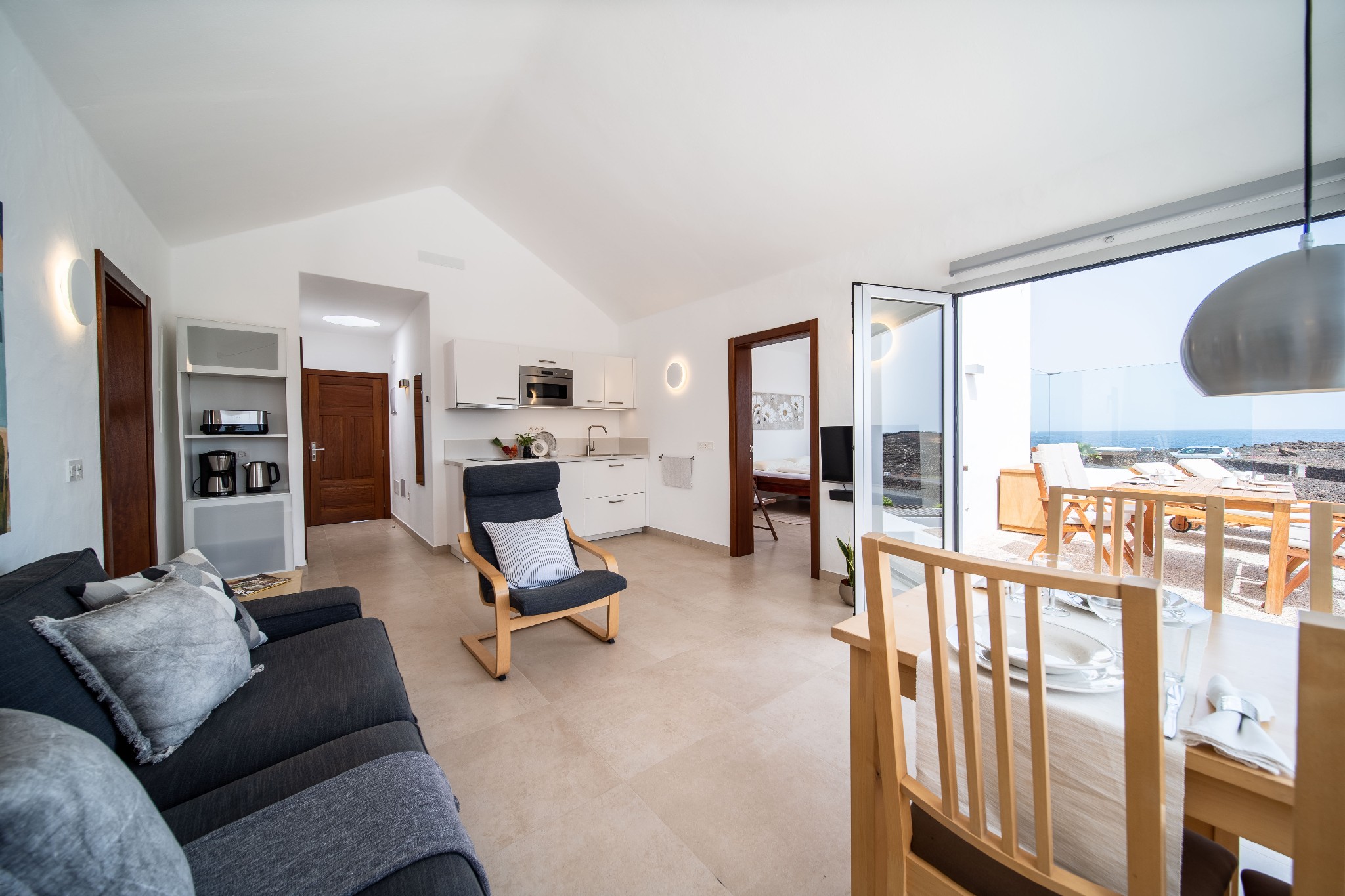 - Las cocinas de las viviendas (La Hondura, Studio La Baja, Punta de la Pared y Vaya Querida) tienen adicionalmente un microondas.