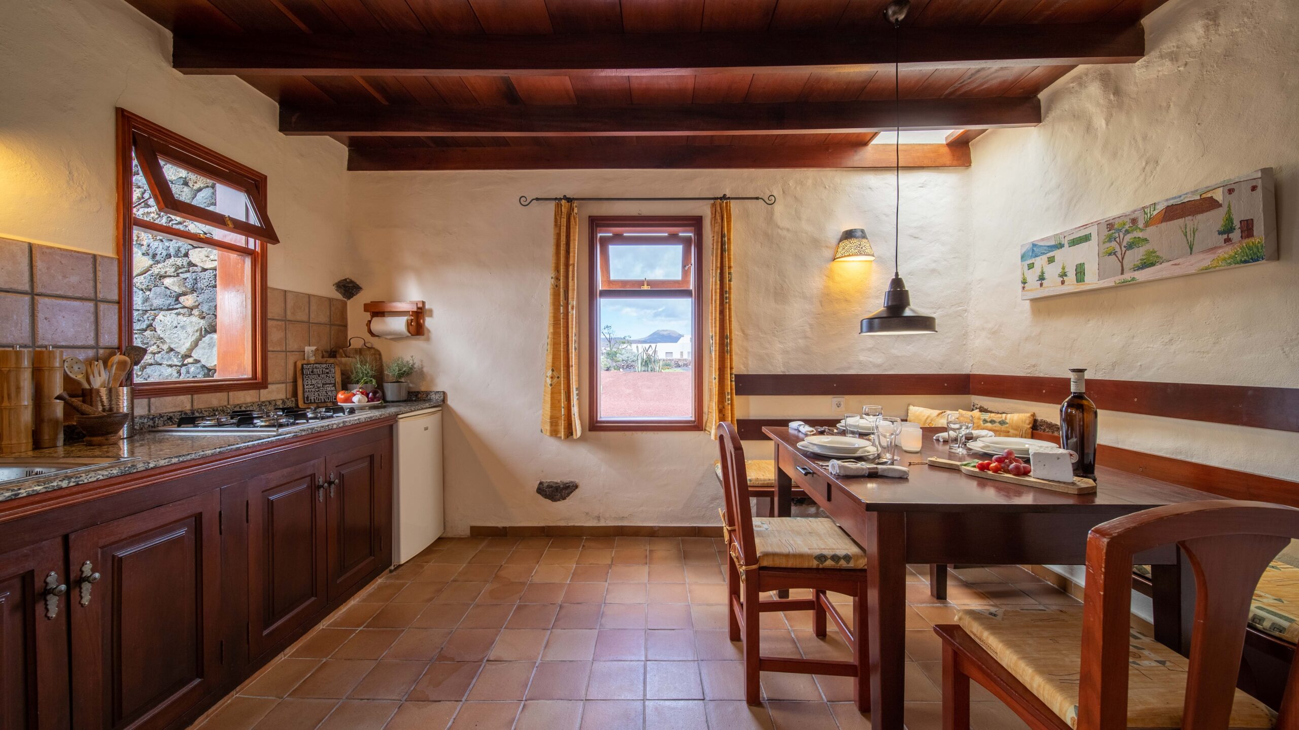 ¡Aquí vivirá en el acogedor y típico ambiente de Lanzarote! Originalmente, la Casita Corral era un establo redondo.